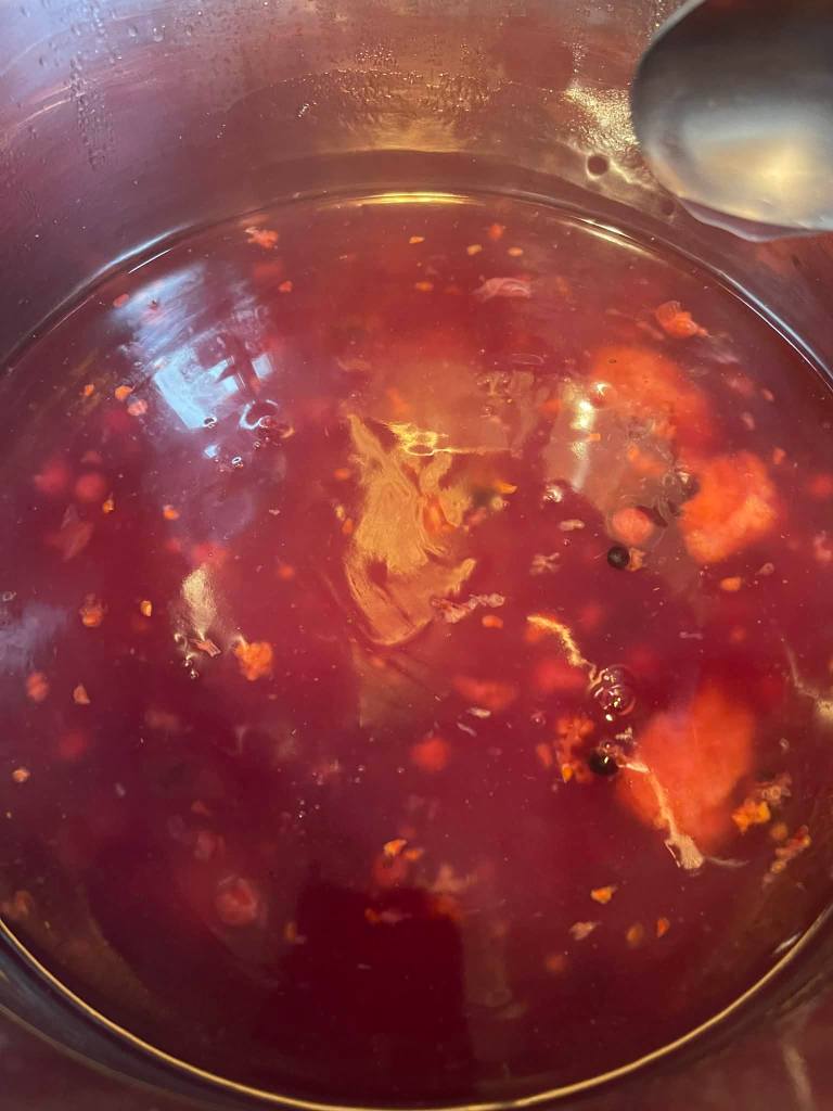 - 150 g raudonų uogų, pvz.: spanguolių (šviežių arba šaldytų)