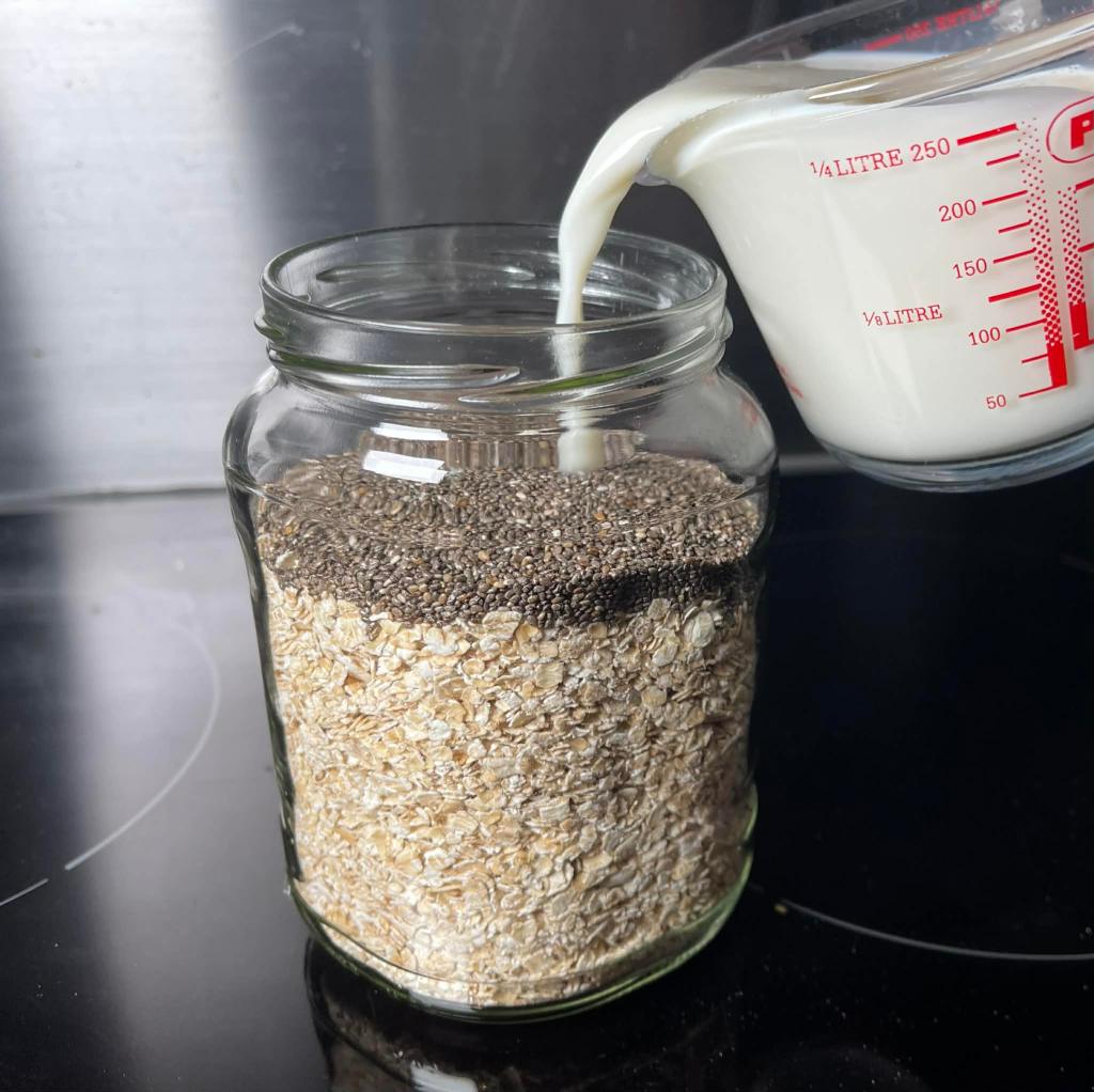 Per naktį mirkytos avižos – tai paprastas, maistingas ir itin patogus pusryčių patiekalas, kuris paruošiamas vos per kelias minutes, o likusį darbą atlieka laikas. Avižos per naktį išbrinksta piene, suminkštėja, o chia sėklos sutirština masę ir suteikia pudingo tekstūrą. Tai puikus pasirinkimas skubantiems, planuojantiems maistą iš anksto ar norintiems subalansuotų pusryčių be ryto gaminimo.